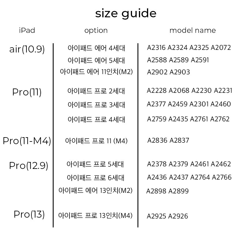 option선택하세요.iPad 10.9인치(에어 4/5세대/에어11인치M2) (품절)